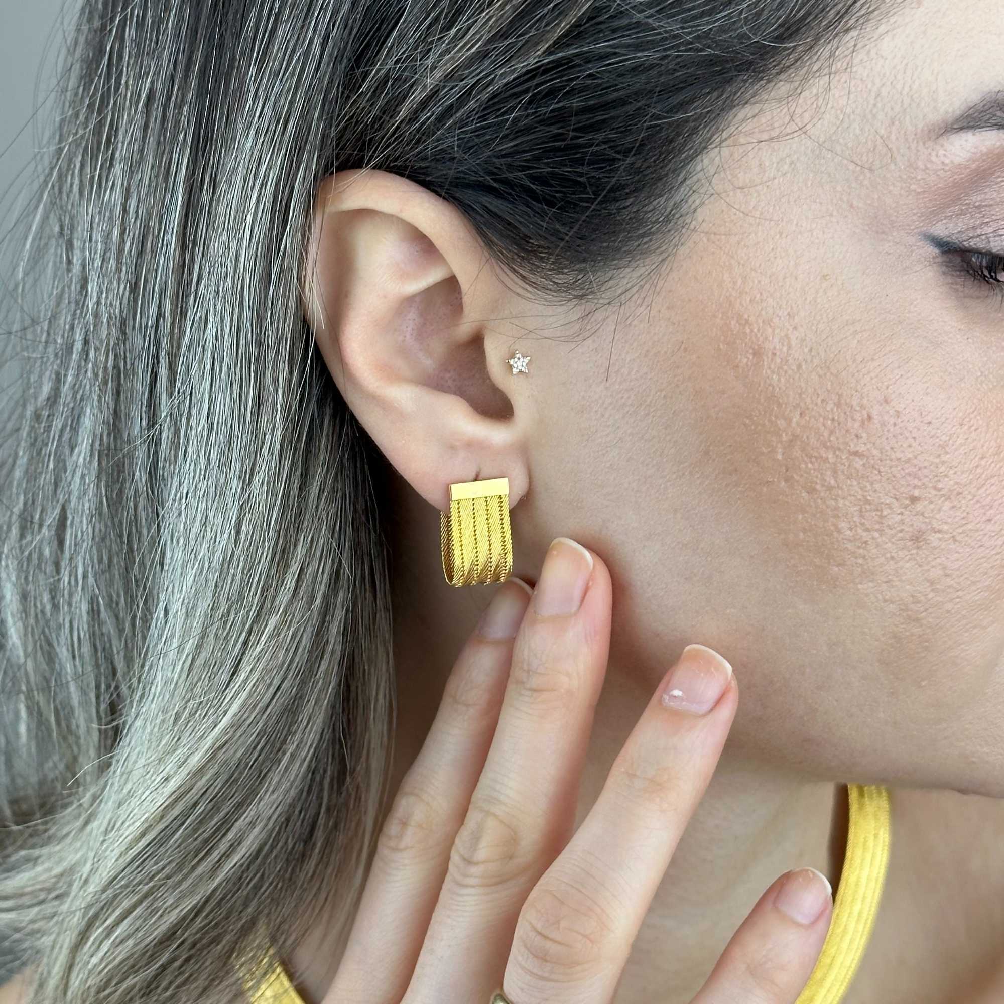 Modern ve şık stil anlayışına sahip bu küpe, günlük kullanımda güçlü bir tamamlayıcı olduğu gibi özel günlerde de prestijli bir hediye seçeneği olarak tercih edilir. Taşsız yapısı sayesinde modası geçmeyen, uzun yıllar keyifle kullanılabilecek bir tasarım sunar.