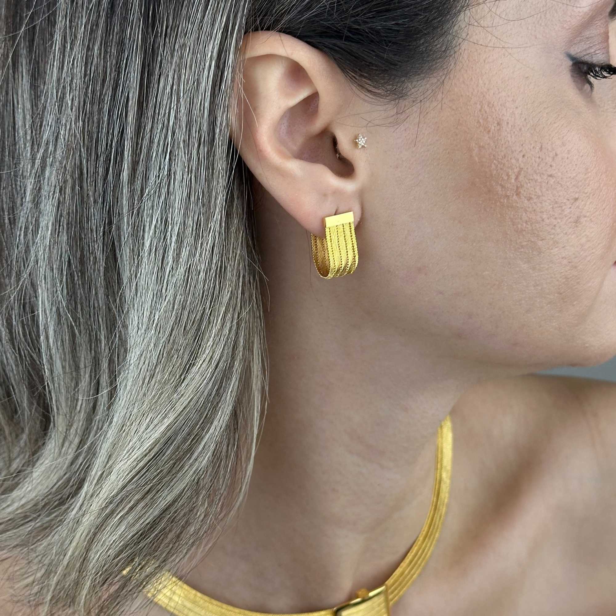 Trabzon hasır geleneğinin güçlü dokusunu taşıyan bu küpe, zarafeti ve gösterişi dengeli bir şıklıkla buluşturur.