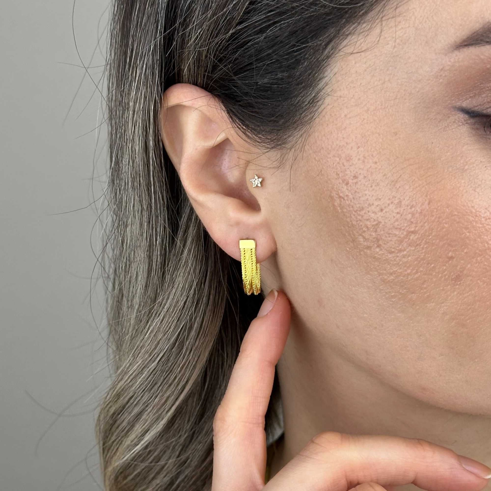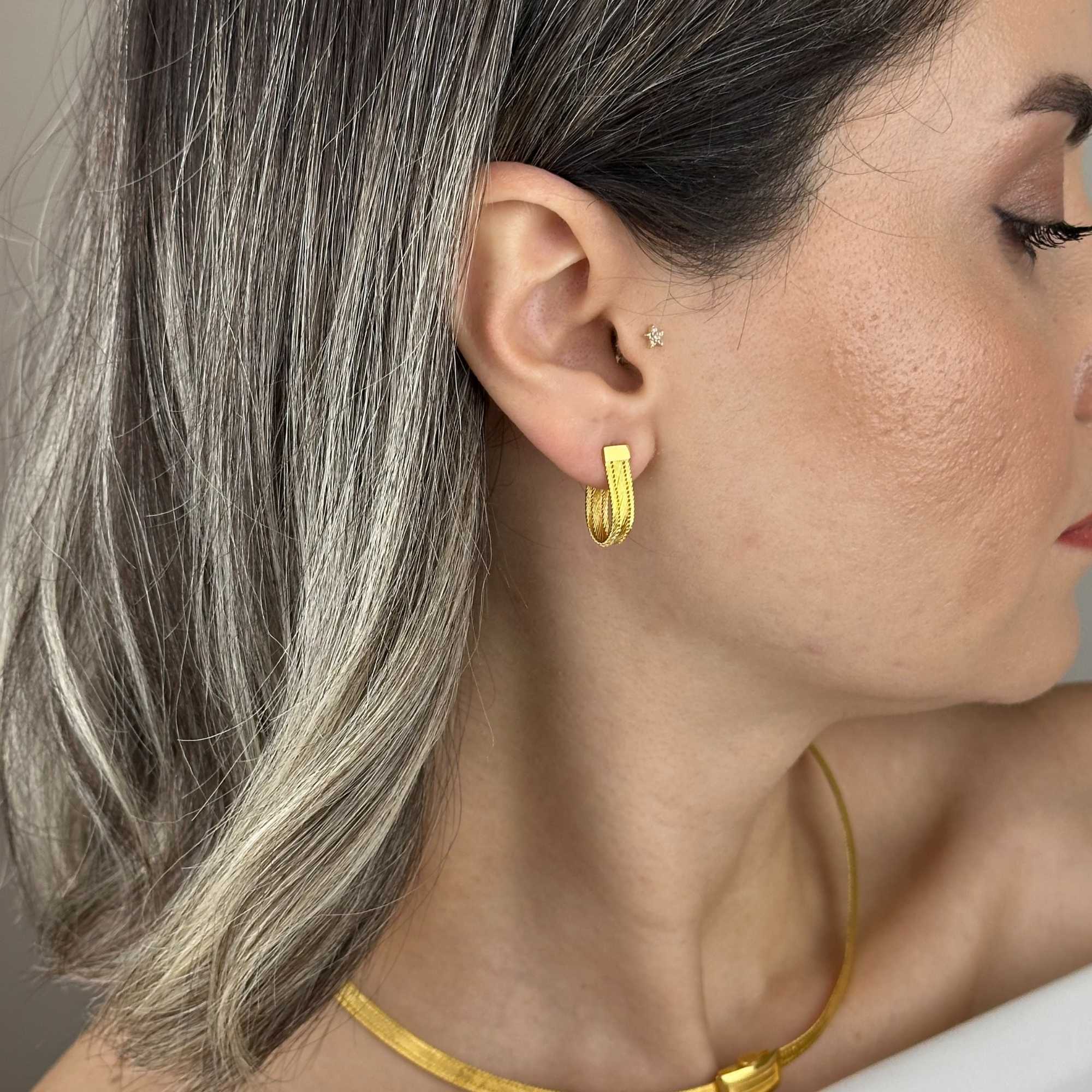 Geleneksel Trabzon hasır işçiliğinin zarif bir yorumu olan bu küpe, ince üç sıra formuyla modern şıklığı günlük stile taşır.