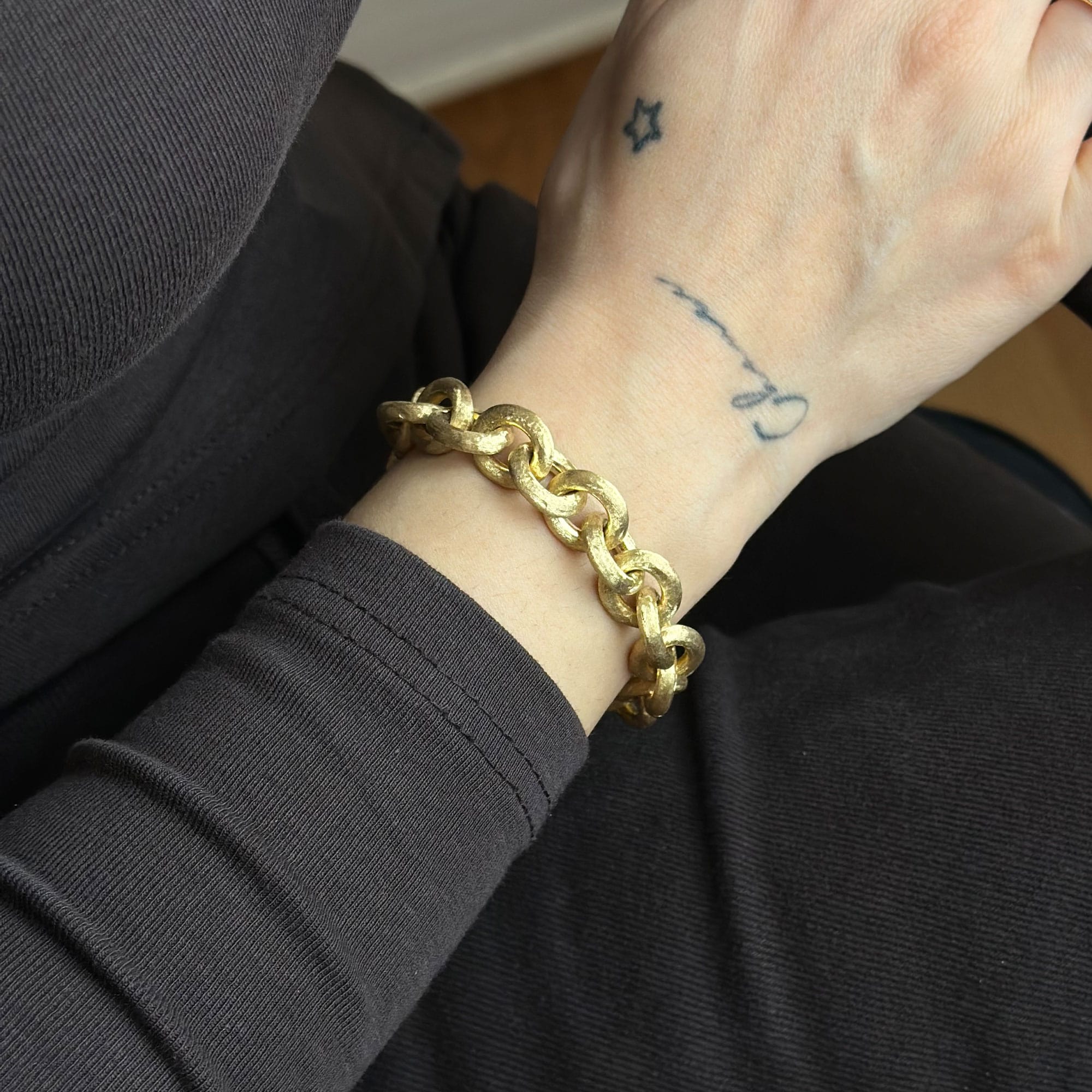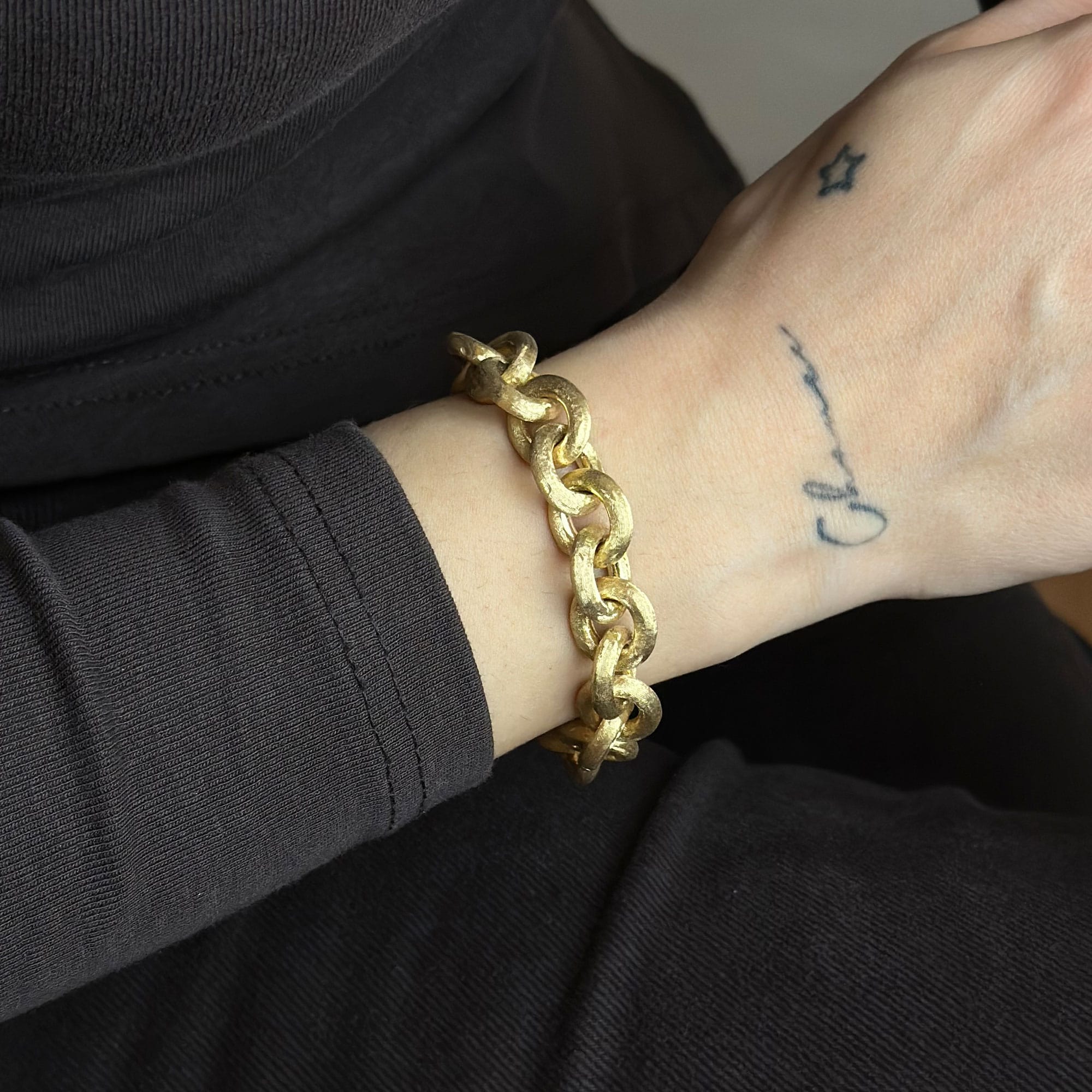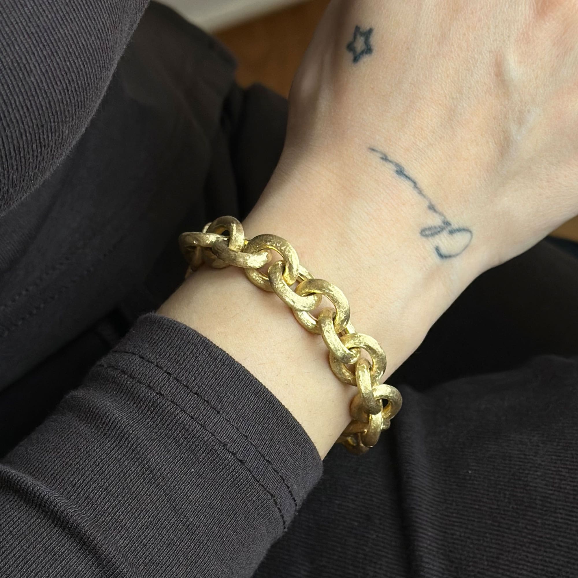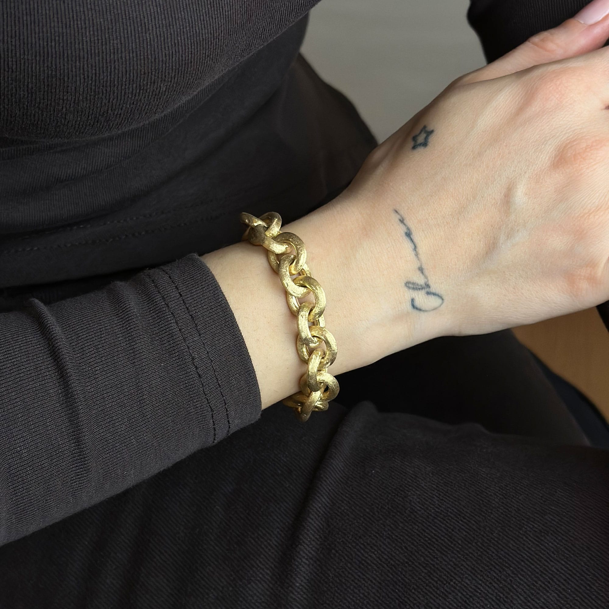 14 ayar altından üretilmiş mat zincir bileklik modeli, modern ve şık tasarımıyla günlük kullanım için idealdir. Sarı altın rengi ve mat dokusuyla sofistike bir görünüm sunan bu bileklik, kadınlar için hem stil tamamlayıcı hem de hediye alternatifi olarak tercih edilebilir. Sertifikalı altın yapısı, güvenli ödeme altyapısı, ücretsiz kargo, taşıma sırasında kaybolmaya karşı sigortalı kargo ve kredi kartına 3 taksit imkanı ile sunulmaktadır. Güncel fiyat bilgisi ürün sayfasında yer almaktadır.